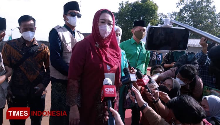 TIMES Bajawa/Putri Abdurrahman Wahid (Gus Dur) Yeny Wahid saat diwawancarai oleh awak media. (FOTO: Moh Ramli/TIMES Indonesia)